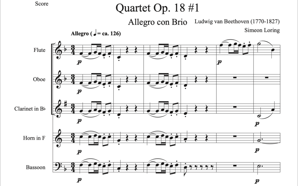 Beethoven Opus 18 #1 arranged for woodwind quintet by Simeon Loring