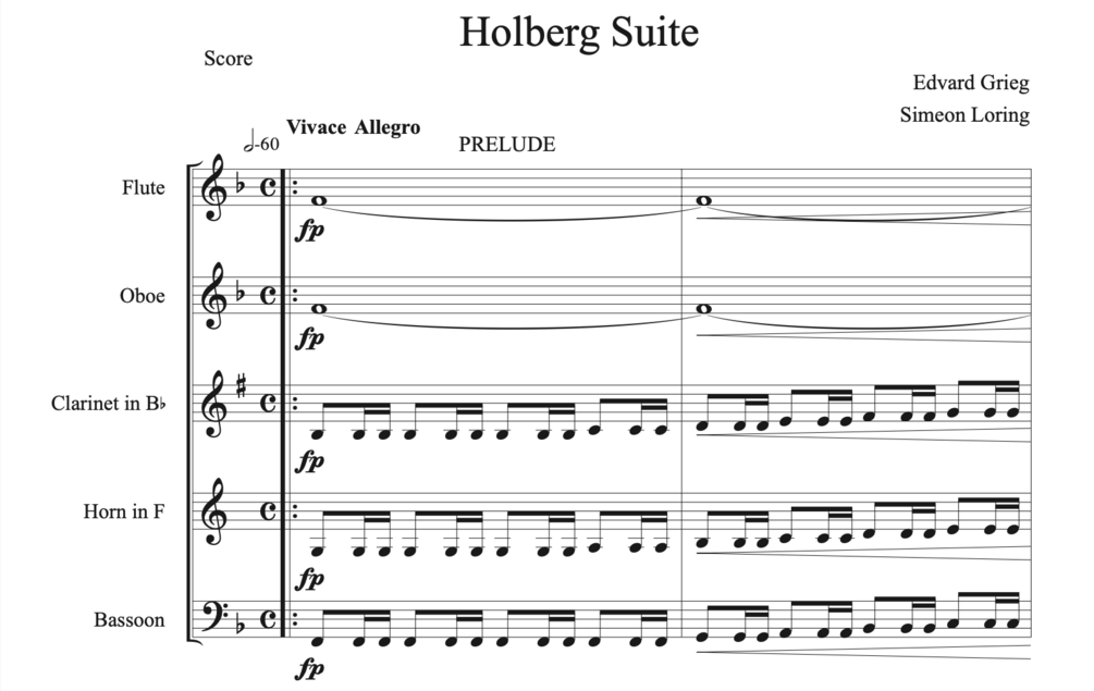 Holberg Suite by Edvard Grieg (1843-1907) arranged for woodwind quintet by Simeon Loring